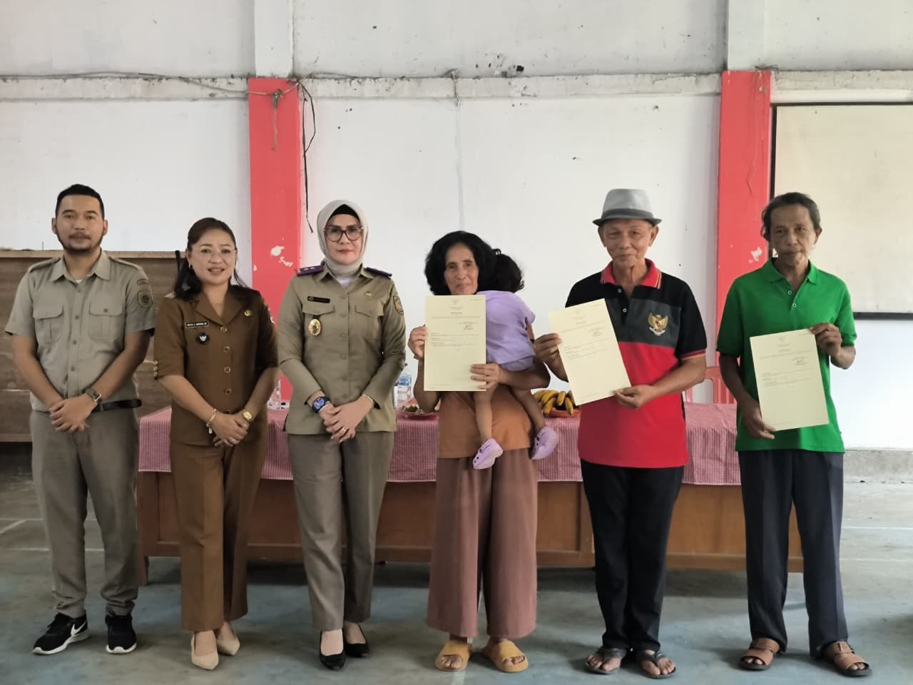 Kepala Kantor Pertanahan Kabupaten Minahasa Selatan, Ibu Heddy, S.H., M.H., didampingi oleh Pjb. Hukum Tua Desa Wakan, Ibu Rifka Esther Warow, S.E., secara resmi melaksanakan penyerahan Sertipikat Elektronik Program Pendaftaran Tanah Sistematis Lengkap (PTSL) Tahun 2025 di Desa Wakan, Kecamatan Amurang Barat.