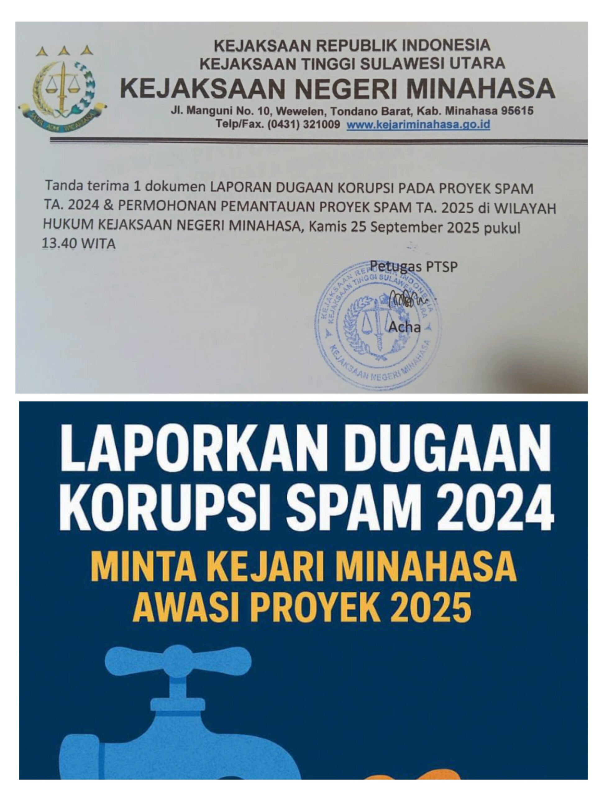 Perkumpulan LSM Independen Nasionalis Anti Korupsi (INAKOR) Sulawesi Utara secara resmi melayangkan laporan dugaan tindak pidana korupsi proyek SPAM Tahun Anggaran 2024 ke Kejaksaan Negeri (Kejari) Minahasa, pada Kamis 25 September 2025.