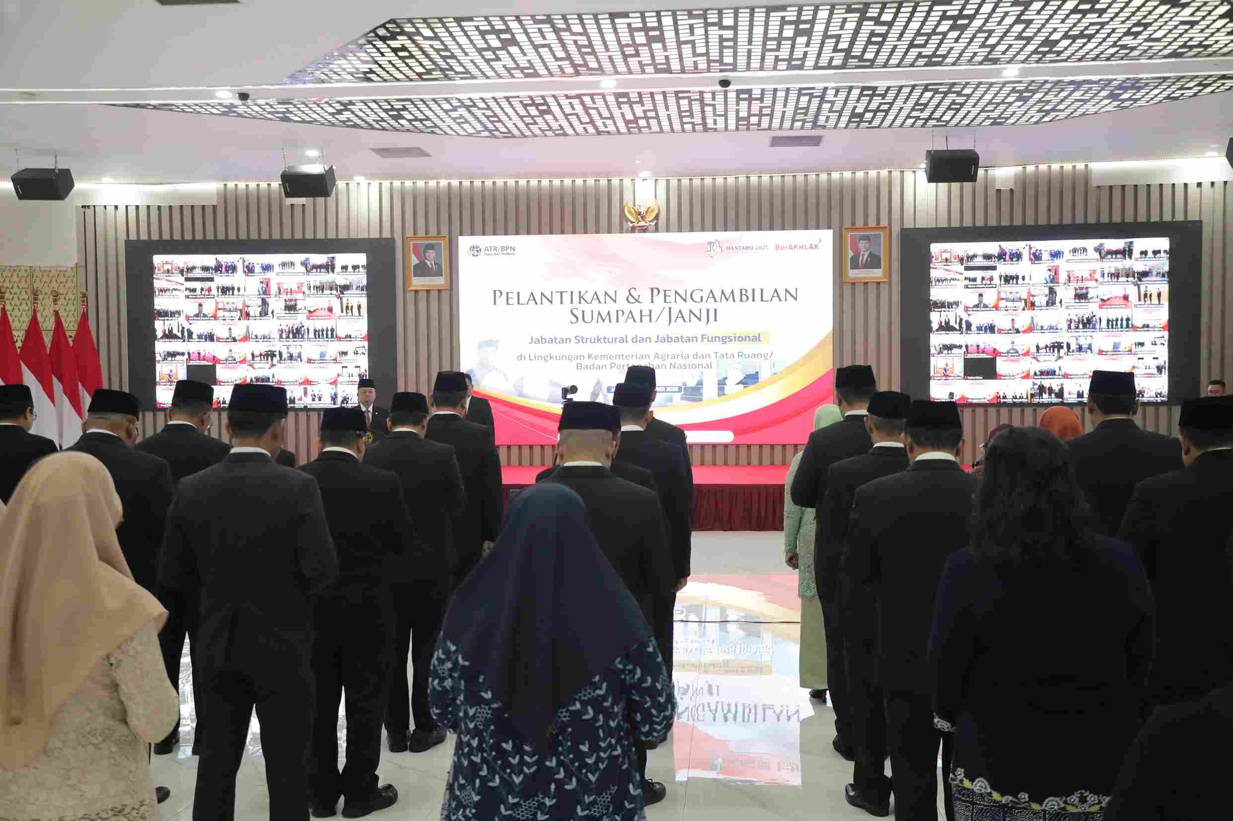 Hadir mengikuti pelantikan secara daring, Wakil Menteri ATR/Wakil Kepala BPN, Ossy Dermawan. Sementara hadir secara langsung, sejumlah Pejabat Pimpinan Tinggi Madya dan Pratama di lingkungan Kementerian ATR/BPN.