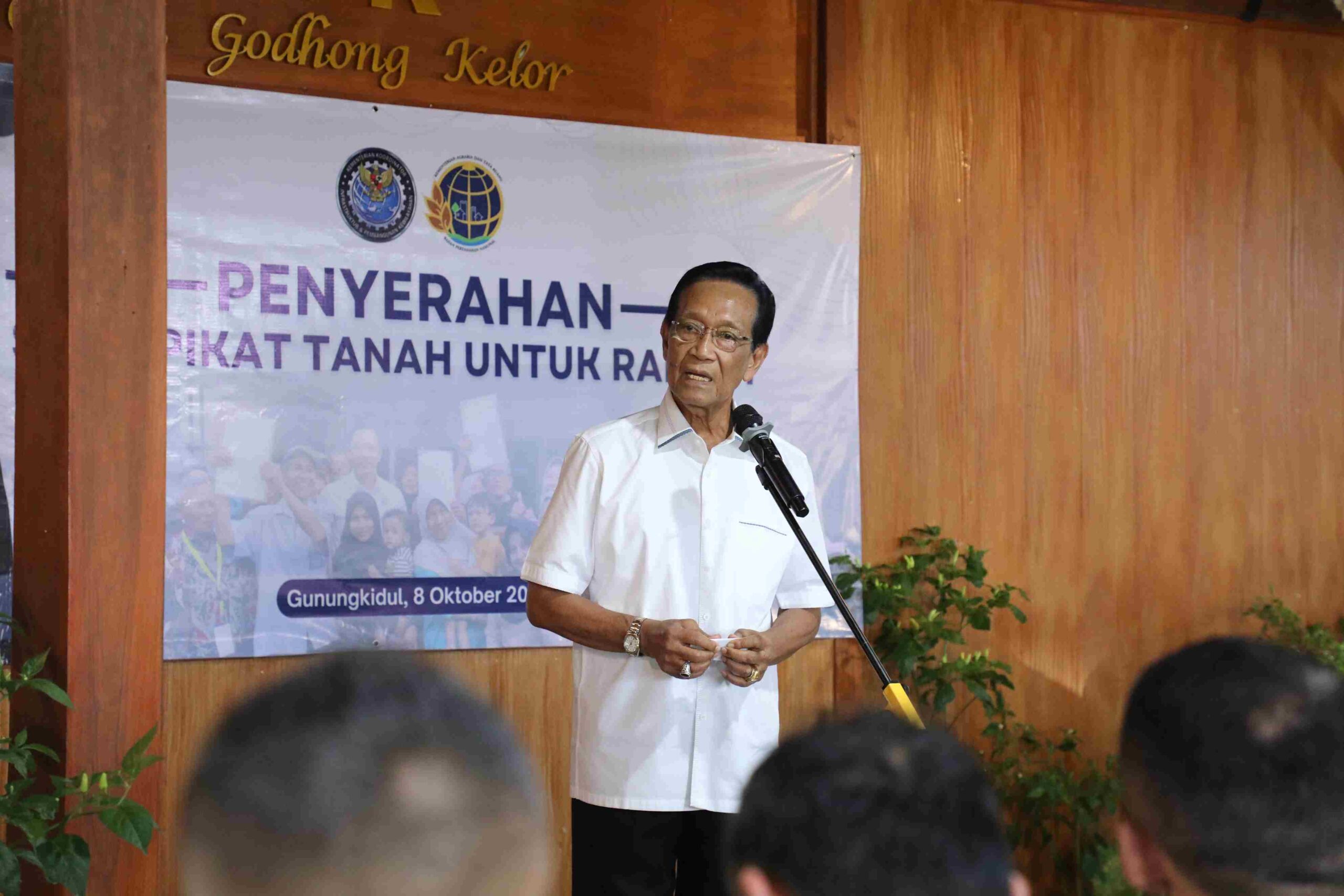 Gunungkidul – Gubernur D.I. Yogyakarta, Sri Sultan Hamengkubuwono X, memberikan apresiasi kepada jajaran Kementerian Agraria dan Tata Ruang/Badan Pertanahan Nasional (ATR/BPN) atas komitmennya memberikan kepastian hukum atas tanah di Indonesia. Di momen Penyerahan Sertipikat Tanah untuk Rakyat yang berlangsung di Gunungkidul, D.I. Yogyakarta pada Rabu (08/10/2025), ia mengakui pentingnya sertipikat tanah sebagai alas hak atas tanah masyarakat Gunungkidul.
