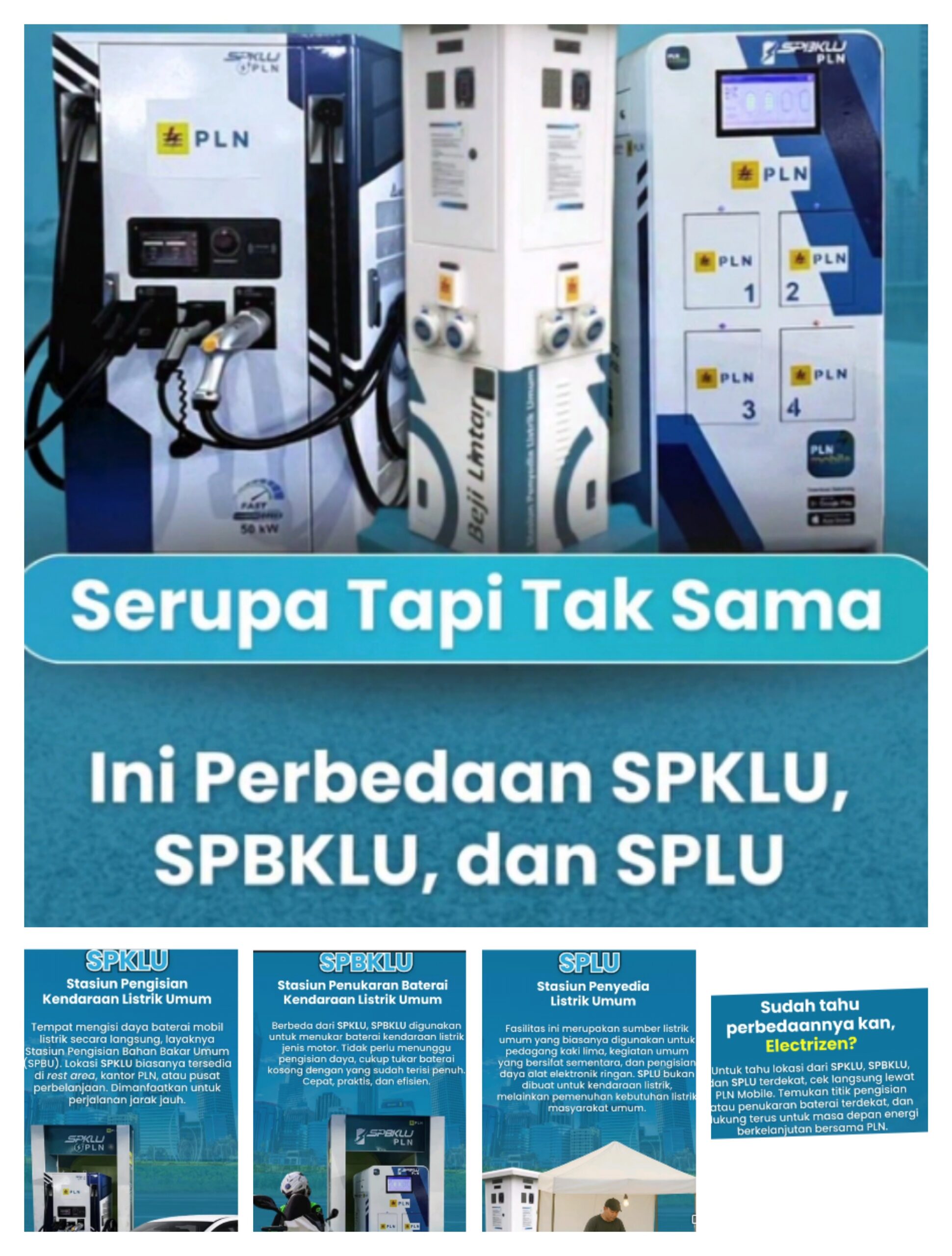 Adapun SPLU (Stasiun Penyedia Listrik Umum) memiliki fungsi berbeda.
