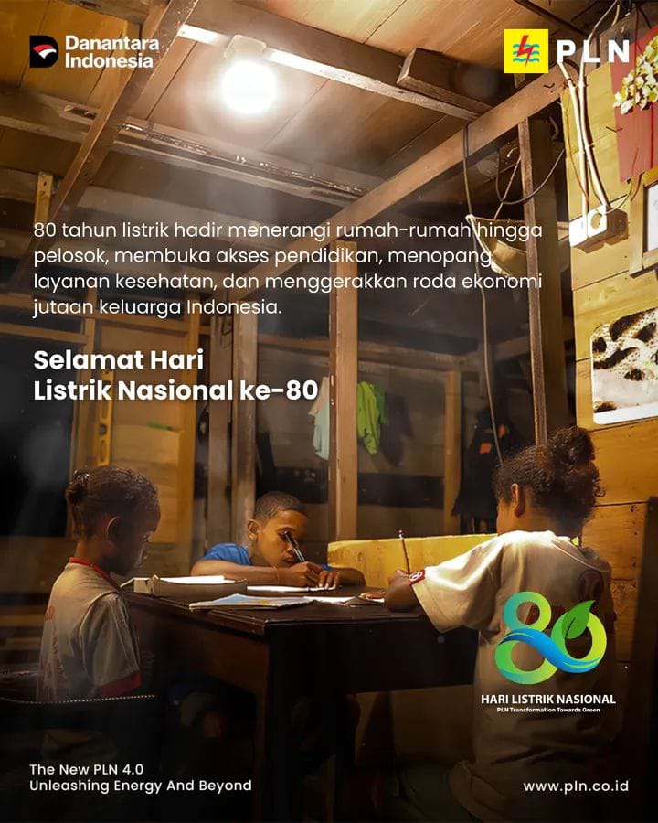 Dari penerangan rumah, fasilitas pendidikan, hingga rumah sakit, semua bergerak karena energi yang menerangi ini,” demikian semangat yang digaungkan dalam peringatan Hari Listrik Nasional ke-80.