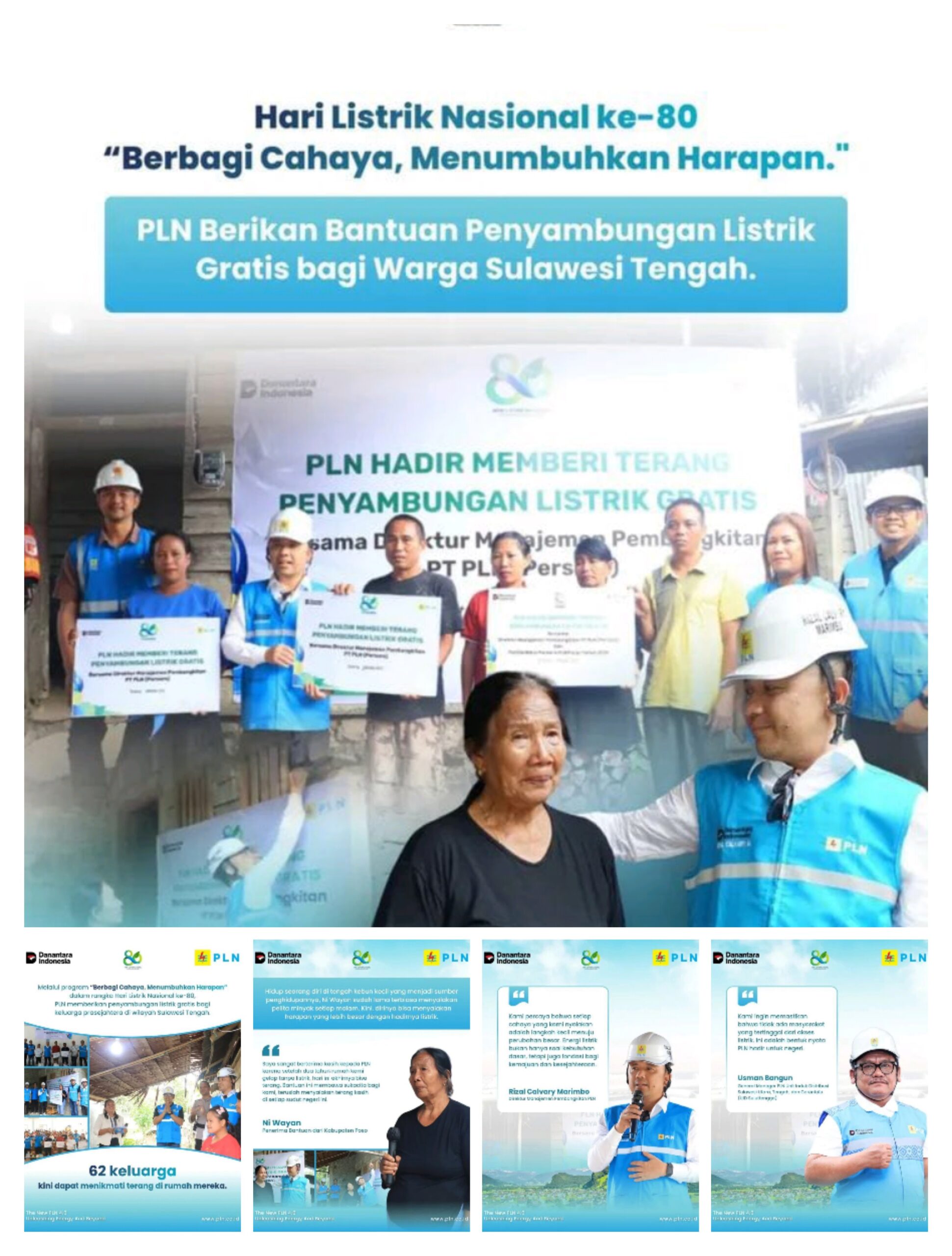 Sulteng, PELOPORBERITA.ID — Dalam rangka memperingati Hari Listrik Nasional (HLN) ke-80, PLN kembali menunjukkan komitmennya untuk menghadirkan terang hingga ke pelosok negeri melalui program “Berbagi Cahaya, Menumbuhkan Harapan.”