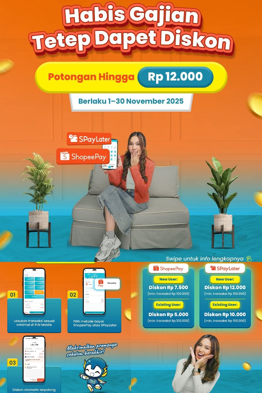 Jangan lewatkan kesempatan hemat ini! Gunakan PLN Mobile dan nikmati promo ShopeePay sebelum periode promonya berakhir.