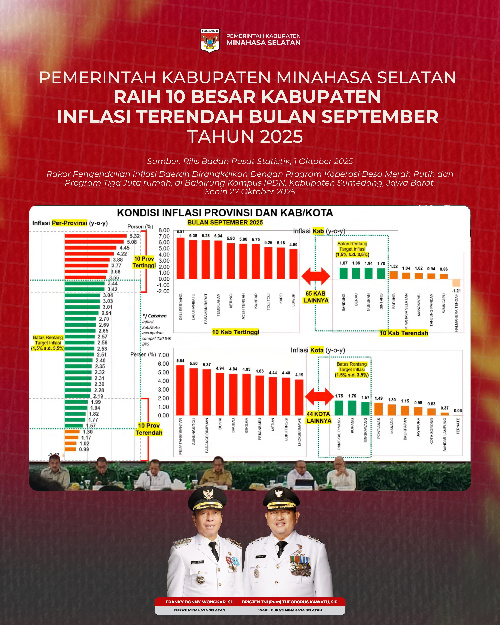 Dengan masuknya Minahasa Selatan dalam daftar 10 besar daerah dengan inflasi terendah se-Indonesia, pemerintah kabupaten kembali membuktikan bahwa tata kelola ekonomi yang konsisten, kolaboratif, dan berpihak pada rakyat mampu memberikan dampak nyata bagi stabilitas serta pertumbuhan ekonomi daerah.