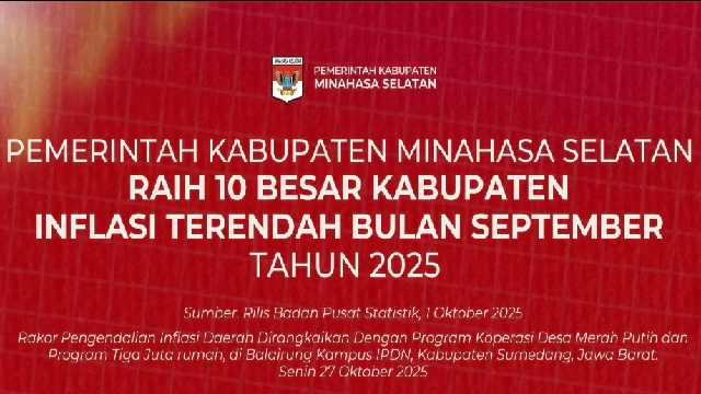Dengan masuknya Minahasa Selatan dalam daftar 10 besar daerah dengan inflasi terendah se-Indonesia, pemerintah kabupaten kembali membuktikan bahwa tata kelola ekonomi yang konsisten, kolaboratif, dan berpihak pada rakyat mampu memberikan dampak nyata bagi stabilitas serta pertumbuhan ekonomi daerah.