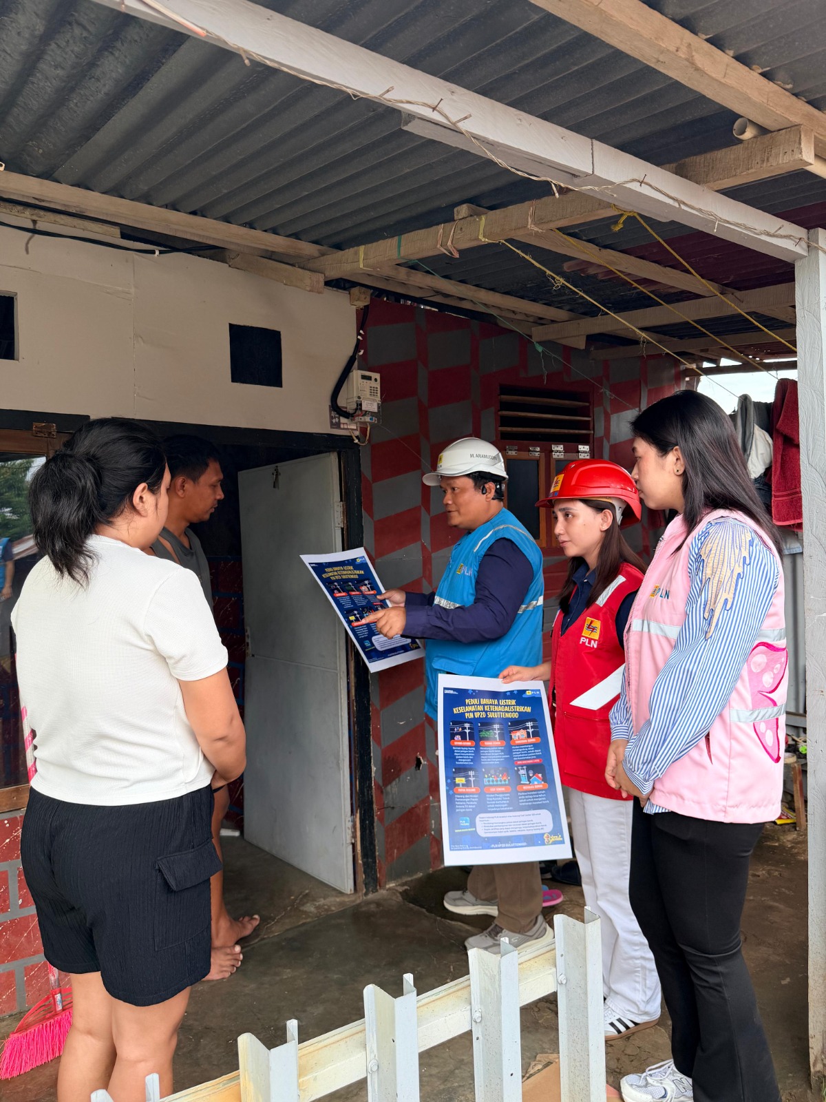 Didampingi oleh Tim Keselamatan, Kesehatan Kerja, dan Lingkungan (K3L) UP2D Suluttenggo setiap rumah diberikan penjelasan mengenai potensi bahaya listrik mulai dari bahaya bermain layang-layang dekat jaringan listrik, bahaya menebang pohon dekat jaringan listrik tanpa berkordinasi dengan pihak PLN, bahaya memasang papan reklame yang dekat dengan jaringan listrik, bahaya menggunakan peralatan listrik yang tidak sesuai seperti menumpuk stop kontak, menjaga jarak aman 3 meter dari jaringan listrik serta mengedukasi untuk melakukan pemeriksaan instalasi listrik setiap 5 tahun sekali.