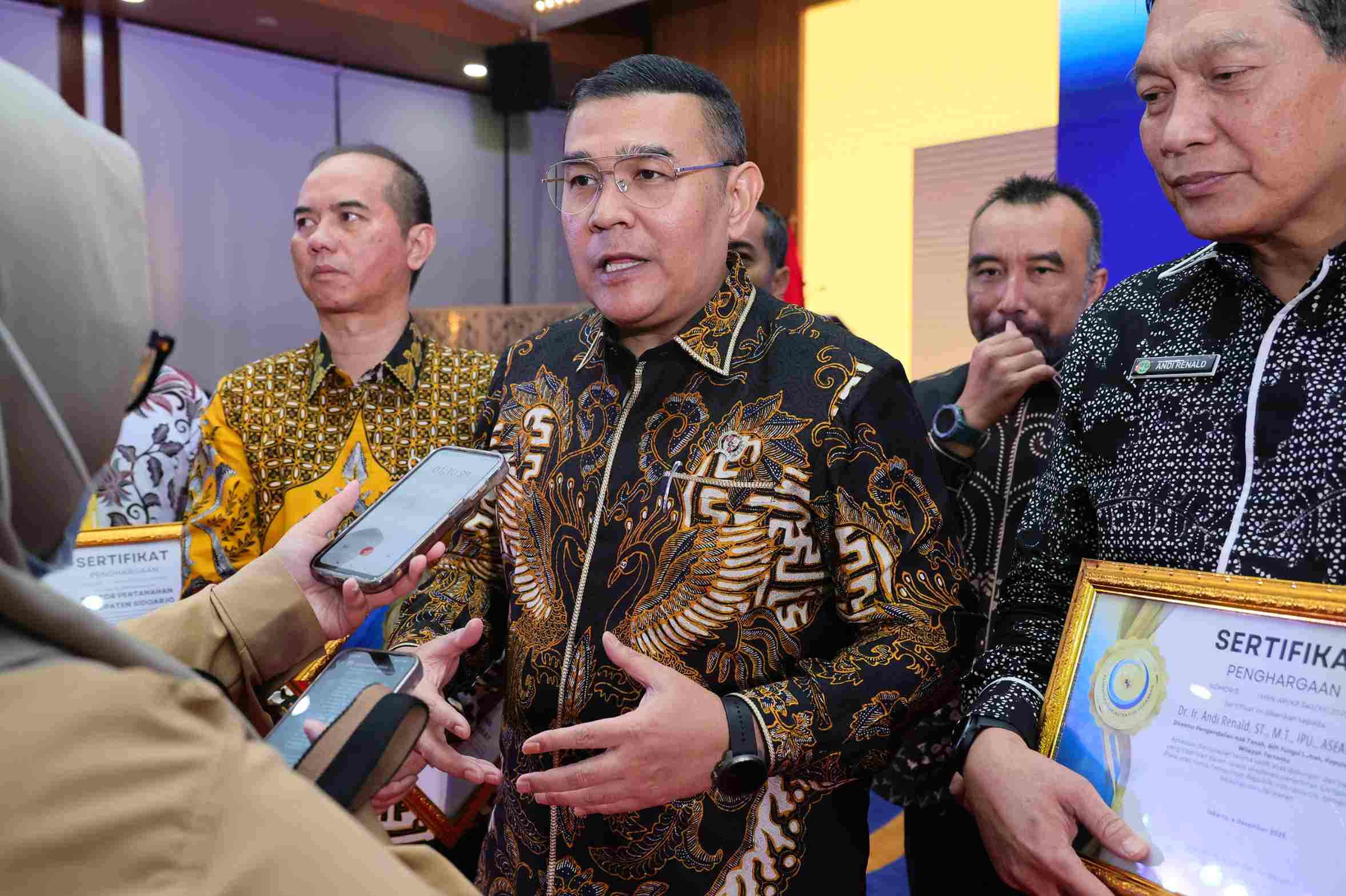 Selain itu, penghargaan juga diberikan kepada Direktorat Pengendalian Hak Tanah, Alih Fungsi Lahan, Kepulauan dan Wilayah Tertentu, serta kepada Direktur Pengendalian Hak Tanah, Alih Fungsi Lahan, Kepulauan dan Wilayah Tertentu, Andi Renald.
