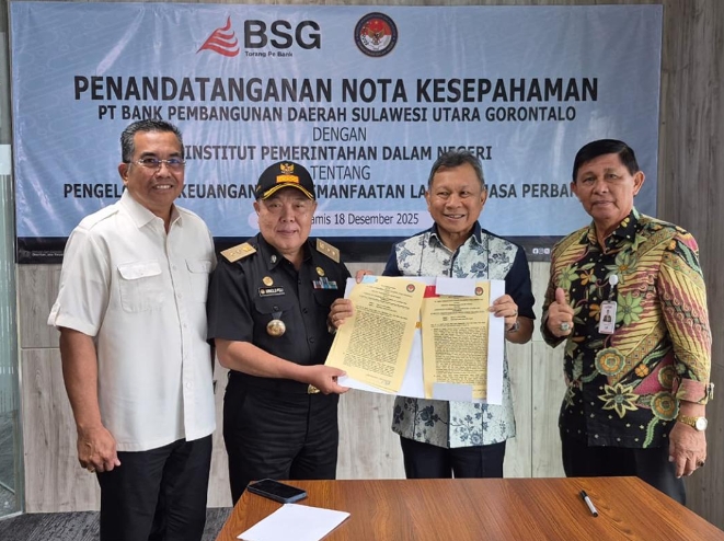 Jakarta, PELOPORBERITA.ID — PT Bank Pembangunan Daerah Sulawesi Utara dan Gorontalo (Bank SulutGo) kembali menegaskan perannya dalam mendukung penguatan tata kelola pemerintahan melalui penandatanganan Nota Kesepahaman (Memorandum of Understanding/MoU) bersama Institut Pemerintahan Dalam Negeri (IPDN) Kampus Sulawesi Utara.